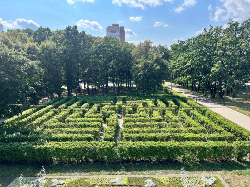 Цікаво – у парку створено дитячий та дорослий зелені лабіринти з декоративних кущів.