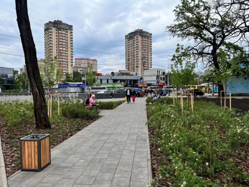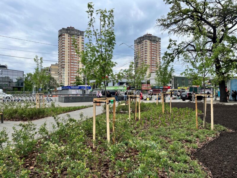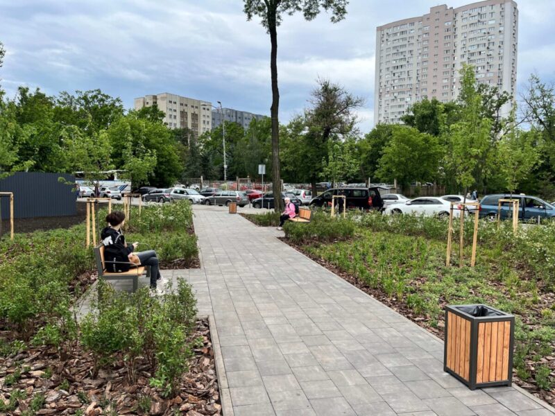Тут висаджено нові дерева та кущі, створено квітники з багаторічних квітів і декоративних злакових трав. Простір доповнили зручними лавами та урнами.