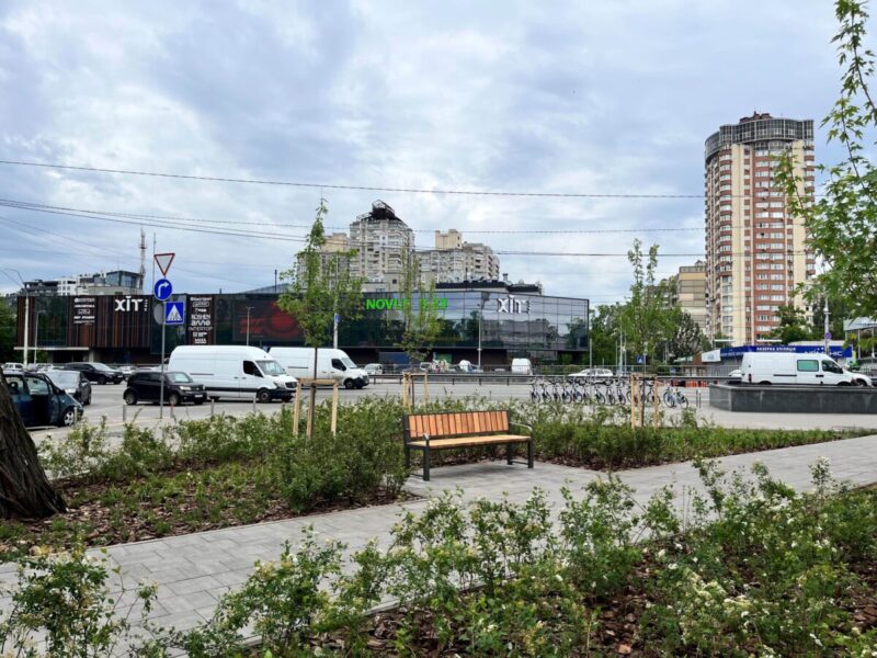 🌿Мінісквер на проспекті Берестейському, 117 – затишний зелений куточок, що розташований поруч із зупинкою громадського транспорту та станцією метрополітену.